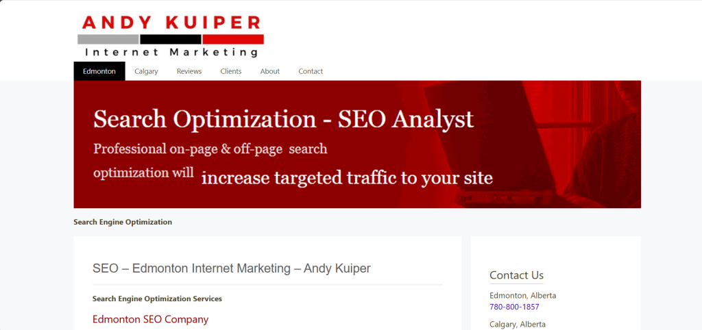 Andy Kuiper – Internet Marketing offers locally-based Calgary SEO services with no long-term contracts, specializing in technical audits, on-page optimization, and Google & Bing Ads management.